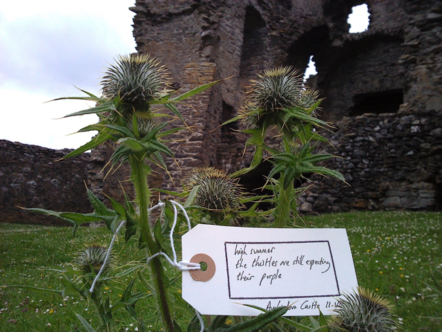high summer August 2, 2011 640 × 480 As I cam’ in by Auchindoun high summer / the thistles still await / their purple