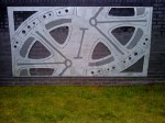 Susheila also made large metal panels to be hung on walls either side of the main entrance, and smaller panels for walls inside the estate, based on drawings of machine parts the kids had made at the museum.