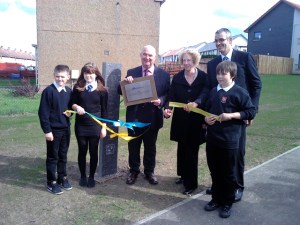 Mine was a recent commission from Melville Housing Association for a new housing development at Langlaw Road, Mayfield, Midlothian. I worked on it with sculptor Susheila Jamieson, and P7 pupils from Lawfield Primary School. (This is a new building – the housing development is on the site of the old school.) The work was to be on the theme of mining, once the main industry in the area, and back in May Susheila and I visited the Scottish Mining Museum at nearby Newtongrange with the pupils.